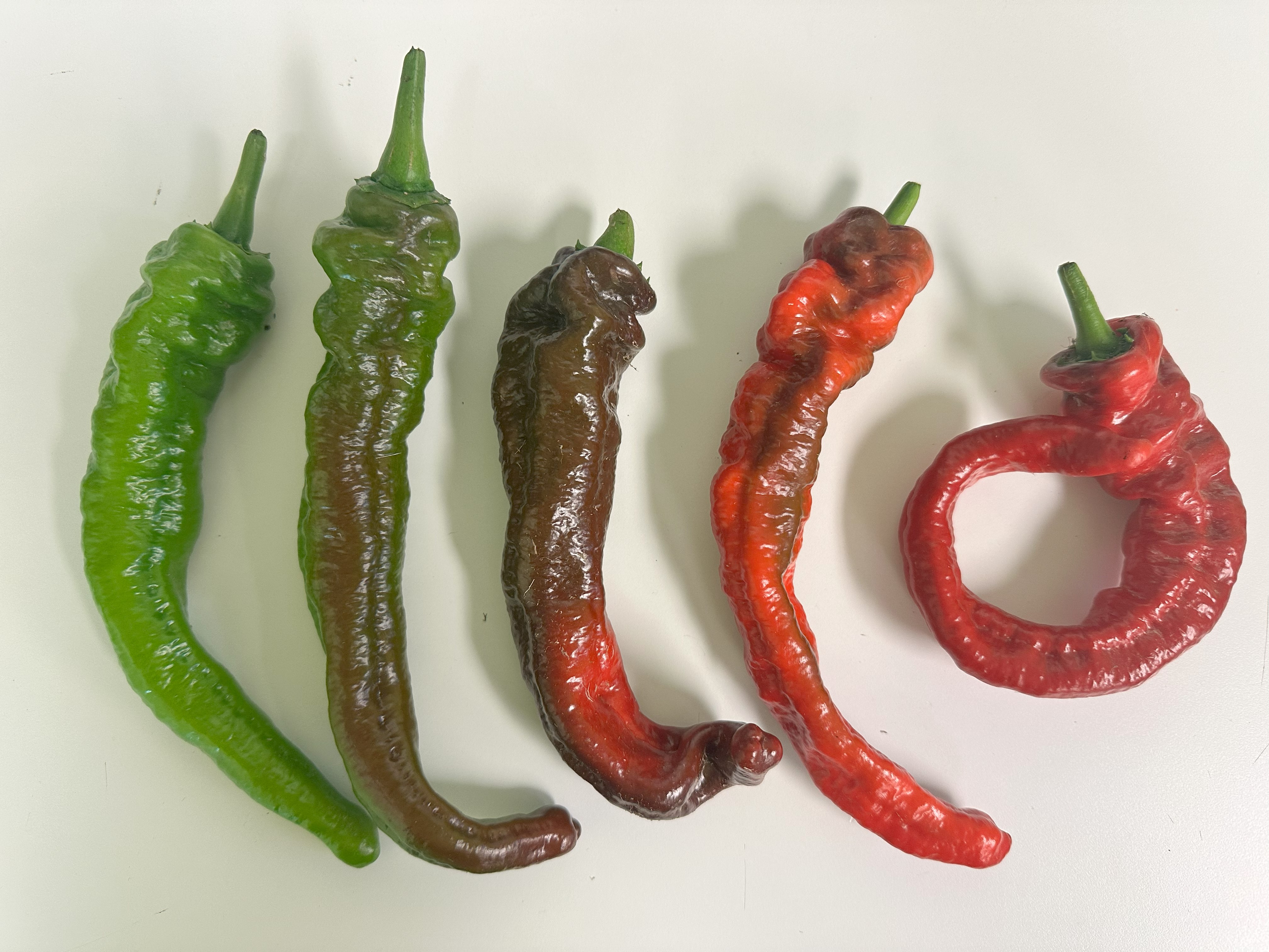 The new Mesilla Pepper will turn a chocolate brown after it's green stage before it turns red. You can see the stages of the color change in the image below: